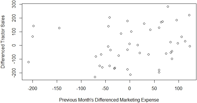 lag one diff sales and marketing Published July 10, 2015 - size: 673 × 351 in How Effective is My Marketing Budget? – Regression with ARIMA Errors, Case Study Example (Part 5) ← Previous Next →