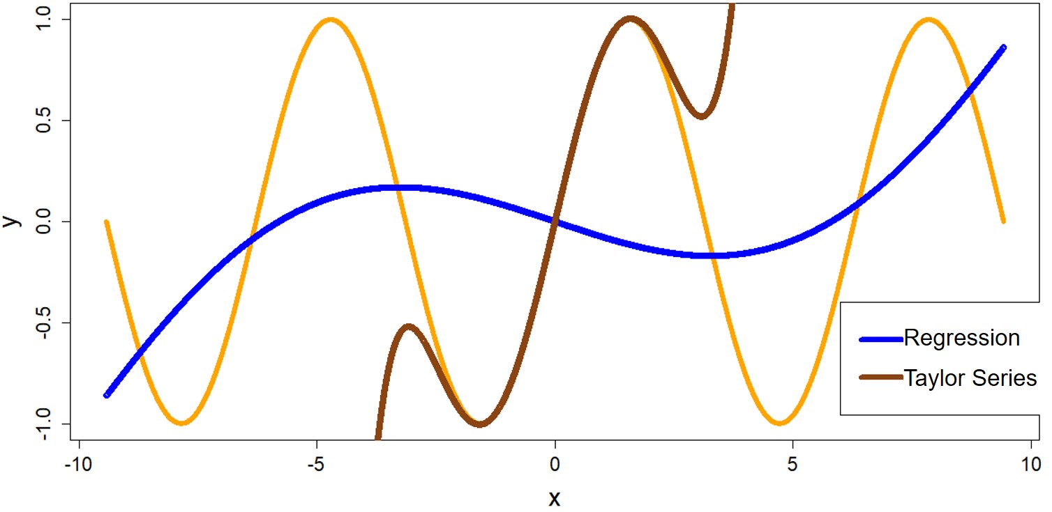 Plot 3 – 5th order fit regression and Taylor series Published December 31, 2017 - size: 1508 × 735 in Machine Learning: Non-linear Regression, Regularization & Cross Validation Simplified (Part 1) ← Previous Next →