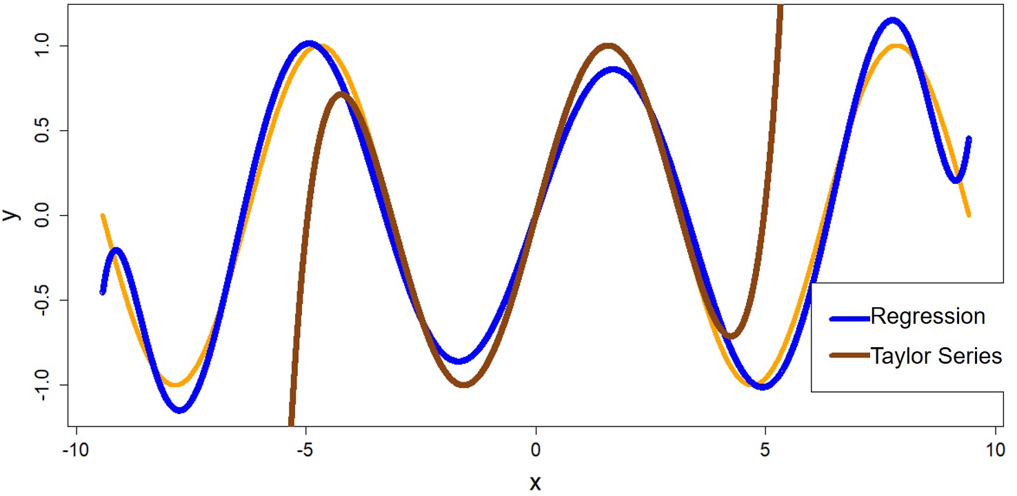 Plot 4 – 10th order fit regression and Taylor series Published December 31, 2017 - size: 1475 × 720 in Machine Learning: Non-linear Regression, Regularization & Cross Validation Simplified (Part 1) ← Previous Next →