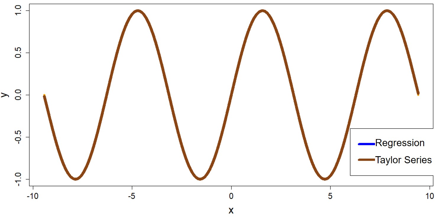 Plot 6- 25th order fit regression and Taylor series Published December 31, 2017 - size: 1481 × 735 in Machine Learning: Non-linear Regression, Regularization & Cross Validation Simplified (Part 1) ← Previous Next →